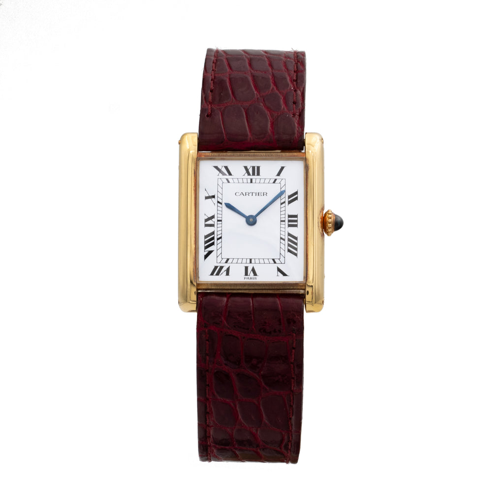Le premier modèle de Cartier Tank est dessiné par Louis Cartier en 1917. En 1918, une fois la Premiere Guerre mondiale finie, Cartier offre le premier exemplaire au général Pershing, puis la montre est commercialisée à partir de 1919, rencontrant le succès et étant rapidement commercialisée outre-Atlantique.
